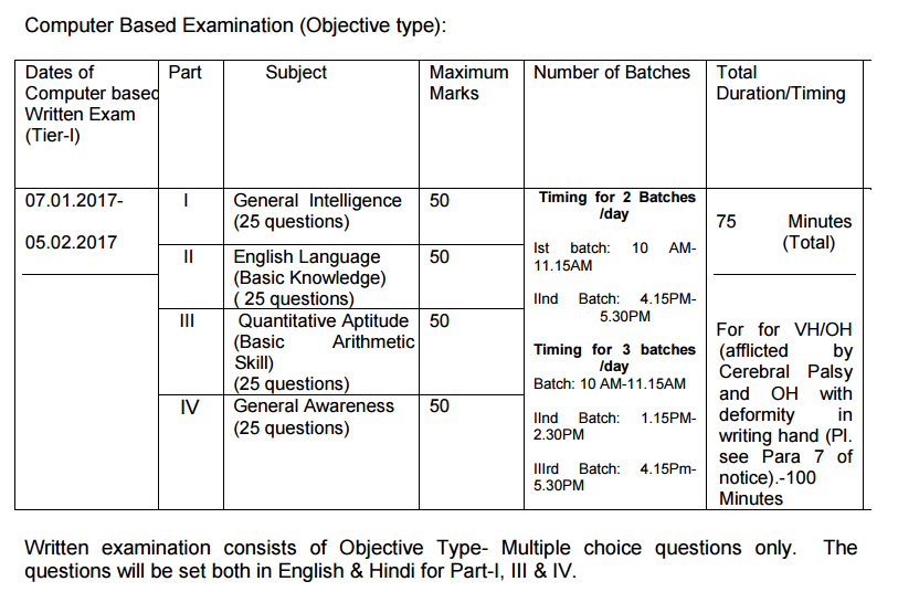 Computer Based Tier-I examination may be organised during the period from 07.01.2017 to 05.02.2017 & Descriptive Test of Tier-II examination may be held on 09-04-2017.